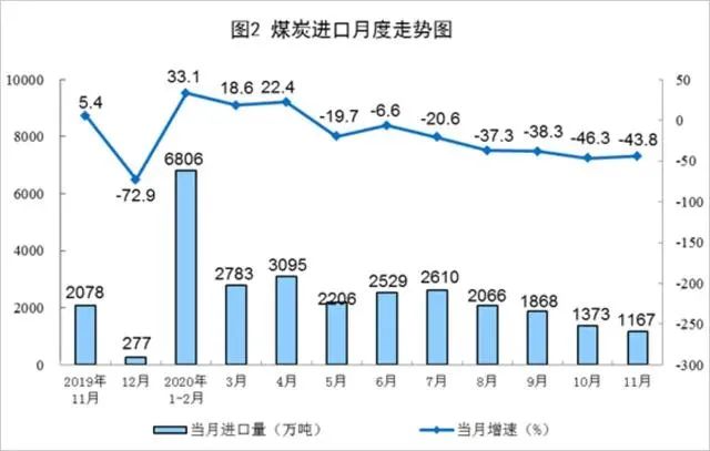但中国从5月开始,就突然收紧了全部进口煤,5-11月,煤炭进口量累计同比减少将近6000万吨。