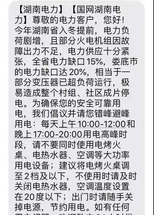 湖南的益阳、衡阳祁东、株洲,还有江西都陆续发布了有序用电方案,在早晚高峰段实施可中断负荷。大家别挤,年底忍忍,错峰用电,省着点,共渡用电难关。