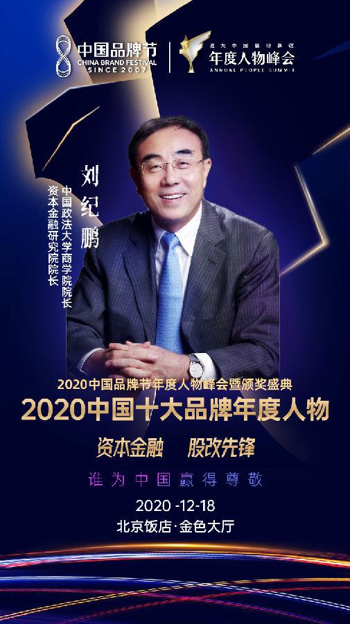 中国政法大学商学院院长、资本金融研究院院长刘纪鹏荣膺“2020中国十大品牌年度人物”