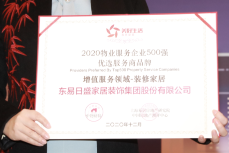 此次盛会,东易日盛凭借赋能物业多种经营的行业先驱荣获“2020物业服务企业500强优选服务品牌”增值服务领域——装修家居类奖项。这既是荣誉,证明东易日盛在驱动物业服务转型升级、建立企业联盟、增值服务发展新方向的创新作为。