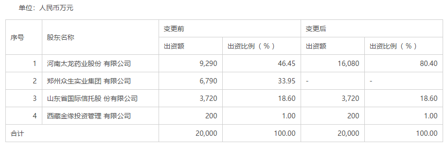 同年,太龙药业亦与山东省国际信托有限公司、控股股东众生集团共同出资参股设立了太龙健康,成为其股权投资平台。近日引发问询的关联交易,就是太龙药业拟用1.28亿现金收购众生集团持有的太龙健康33.95%的股权。若此收购顺利完成,太龙药业将持有太龙健康80.4%的股份。