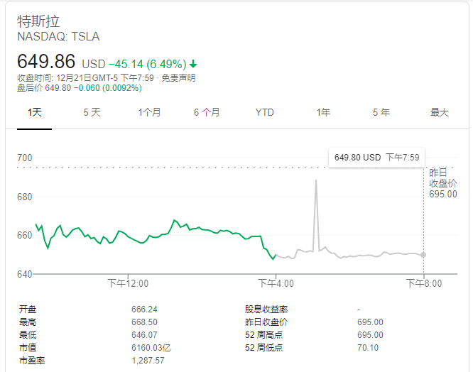 据媒体报道,追踪标普指数的基金在12月18日收盘前购买了市值800亿的特斯拉股票。由于特斯拉自周一起加入标普500指数,权重约1%,跟踪该指数的基金必须购买相应比例的特斯拉股票,以适应标普500指数更换成份股。