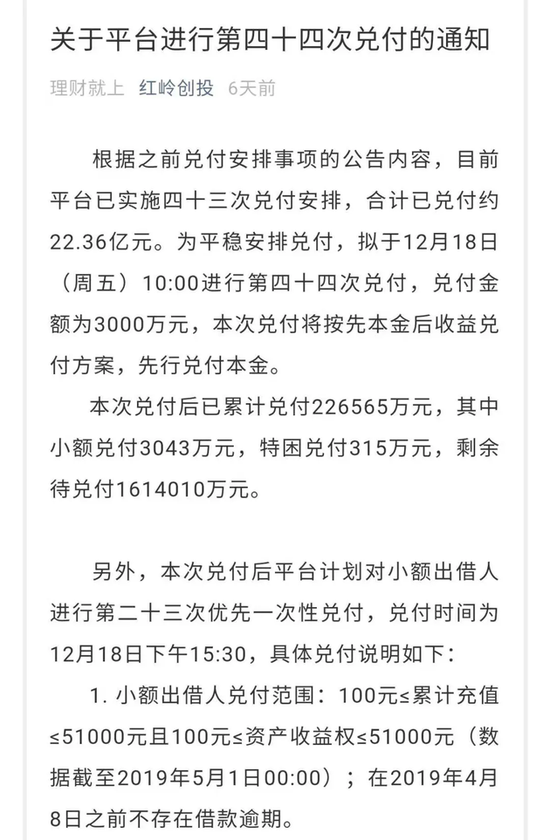 还有几家P2P平台的进展比较缓慢,如网信普惠,目前没有立案,也暂无清退方案。小牛在线和红岭创投两家深圳平台,采取的则是分批兑付的方式。
