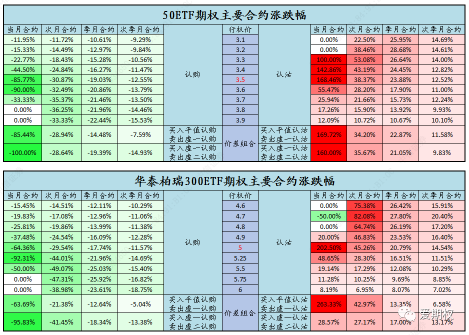 认沽普涨,当月平值附近获翻倍收益。今日认沽期权普遍上涨,当月平值附近认沽期权收获翻倍以上收益。认购期权这边,当月、次月认购及牛市价差组合均有所亏损,亏损幅度依次为虚值认购、平值认购、牛市价差组合、实值认购。