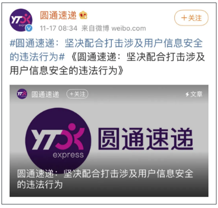 新闻多看点圆通内鬼致超40万条个人信息泄露