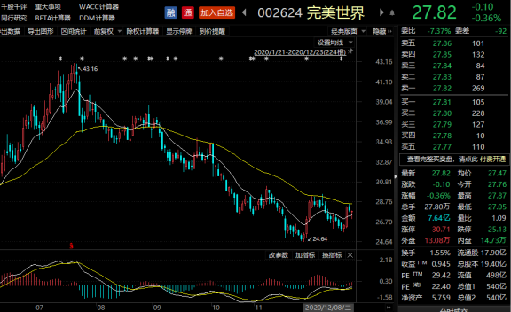 经历了上半年业绩高增速之后,下半年游戏头部公司的增速明显放缓。二级市场上,下半年游戏行业股价更是遭遇滑铁卢,其中市值超500亿的游戏行业龙头股完美世界股价同样接近腰斩。