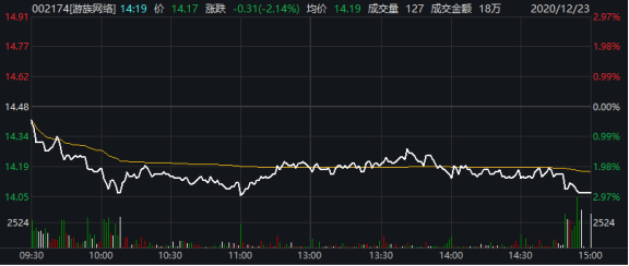 今日,游族网络低开低走,逆势收跌2.14%,报14.19元。拉长时间看,自7月14日高点以来,公司股价累计跌幅已接近50%,一波回调可谓“惨烈”。