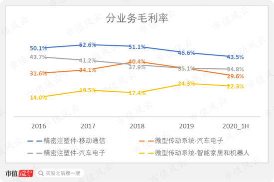 精密注塑件的毛利率则是受汽车电子的影响逐年下滑。
