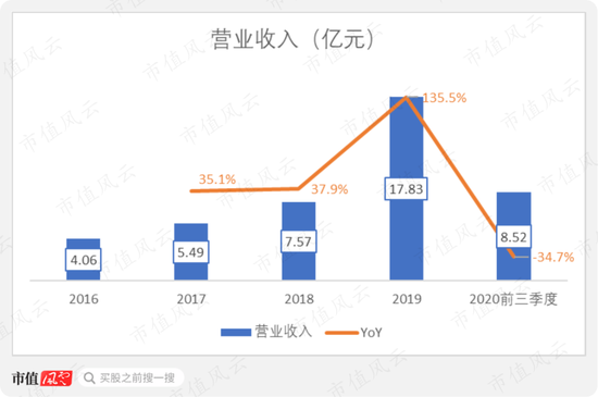 而在这之前,公司的增长还是不错的:2019年营收更是同比增长了135.5%,达到17.8亿元。