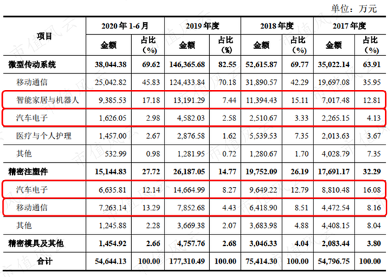 除了移动通信类微传系统外,其他有一定规模并且能稳定增长的业务有:智能家居和机器人类微传系统、汽车电子类微传系统、汽车电子类精密注塑件、移动通信类精密注塑件。