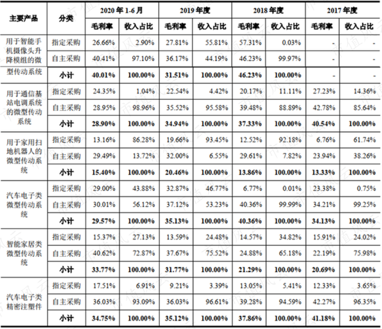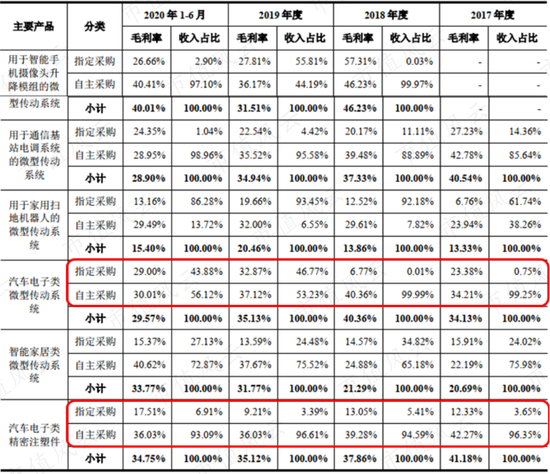 比如说用于家用扫地机器人的微传系统,客户多数是代工厂,指定采购模式占比高达93.5%,而相应的毛利率只有19.7%,远低于自主采购模式下的32.0%。