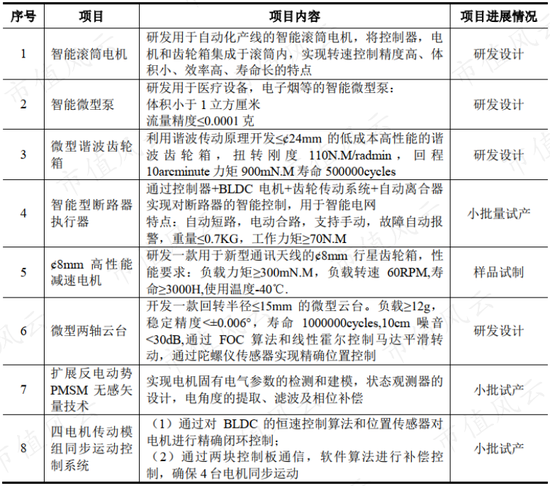 兆威的在研项目中分别有用于医疗设备、电子烟、智能电网、通讯天线、通讯基站、汽车电子的项目。
