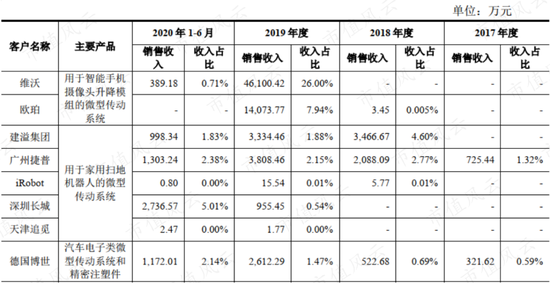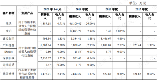 2019年,Vivo、华为、Oppo、小米分别是兆威机电微传系统的前四大客户。