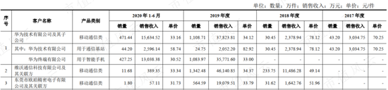 其中,对华为的销售收入又分为通信基站产品和智能手机产品。