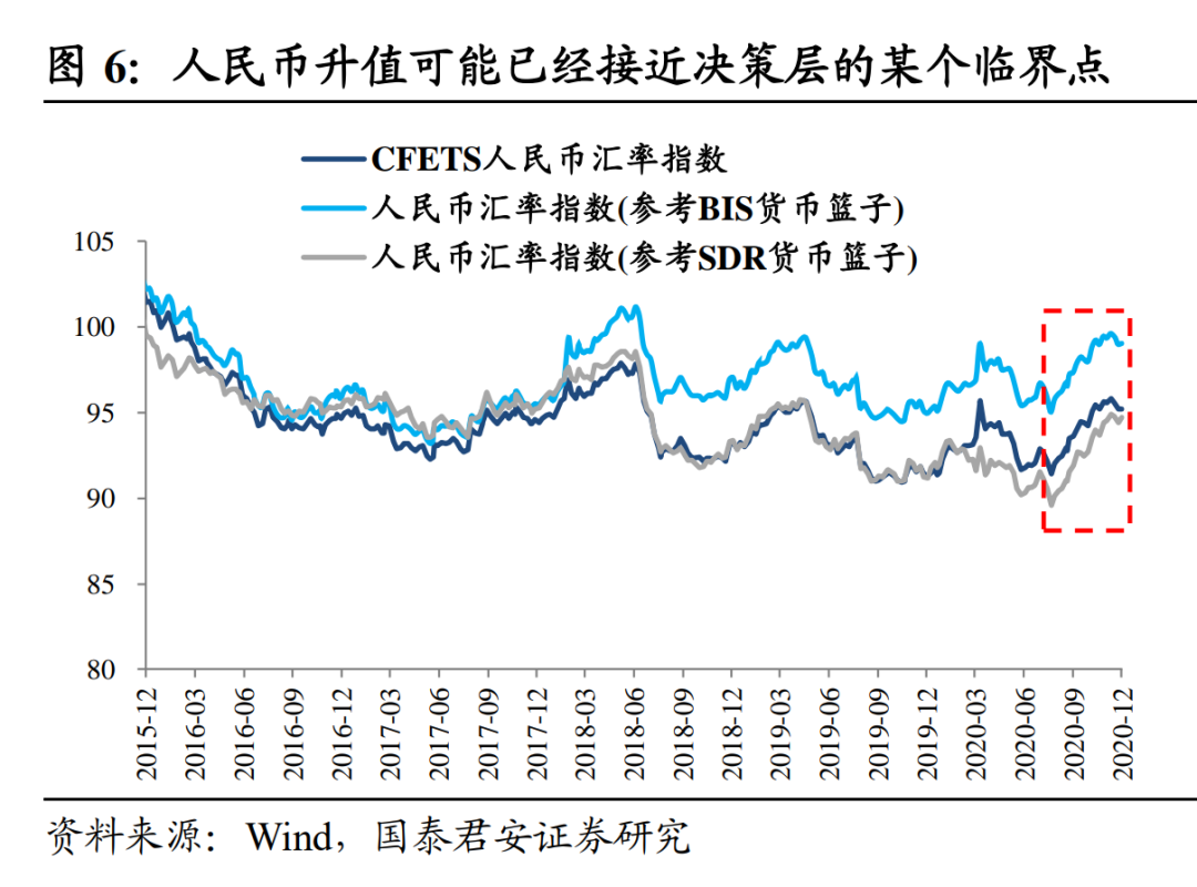 决策层有意呵护经济复苏趋势,尽可能长时间实施正常货币政策。其一,政策强调“不急转弯”和“跨周期调节”,表明决策层有意呵护当前的复苏趋势,希望保持2021年经济在更长的区间内平稳运行;其二,2021年国内维稳需求强,叠加11月社融顶已隐现,央行长期保持货币政策正常化的决心更加坚定;其三,人民币汇率可能已经接近决策层的某个临界点,因此需要缩小国内外货币政策差距,以保持人民币汇率在合理均衡水平上基本稳定。