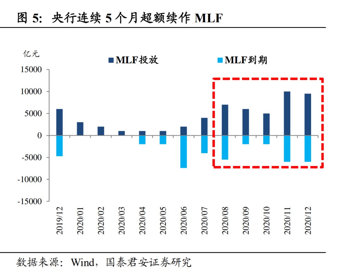 但是永煤事件后,宽松信号愈发强烈。11月永煤事件冲击后,先是11月25日交易所GC007天量成交,随后央行在月底打破规律意外投放2000亿MLF,并在12月中单次净投放3500亿MLF,宽松信号越发强烈。