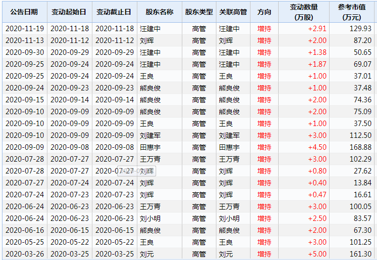 据此前公告,此次董监高增持计划的实施期限为2020年10月31日起四个月内,不设价格区间,并承诺买入起两年内不对外转让。
