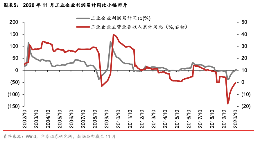 11月工业企业利润同比较10月回落,但仍维持双位数较快增长,1-11月工业企业利润率升至6.1%,接近2017年3-7月水平;高端制造→中游设备→传统行业的景气扩散趋势清晰;1-11月计算机通信及电子业利润累计同比较上月扩张3.1pct;1-11月通用设备/电气设备利润累计同比增速分别较上月扩张0.5/3.1pct;1-11月煤炭开采洗选/纺服/家具业利润累计同比跌幅分别较上月收窄3.2/0.5/2.4pct;上述行业盈利趋势体现:5G科技周期仍强、中游设备景气延续上行、冷冬与转单效应继续支持传统行业修复。
