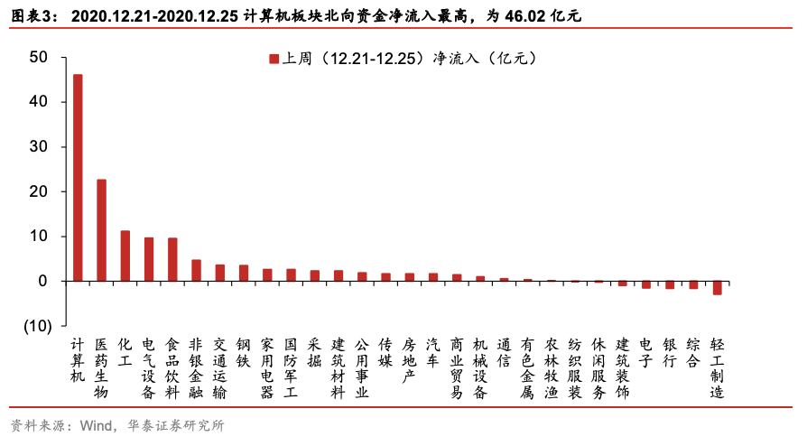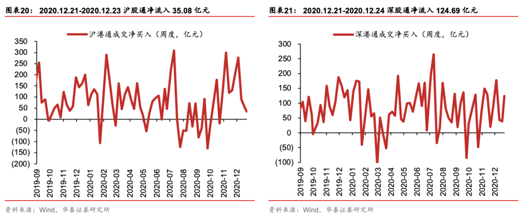 上周两市成交额环比回升16%,结构热度高于整体。顺周期风格中,碳中和相关的电新、受益于十四五订单改善+订单模式优化的军工强势,大金融偏弱,再通胀涨价主线分化,冷冬相关煤炭+碳中和相关的小金属强势,欧洲第三轮疫情冲击下采掘走弱。顺周期内部分化体现:1)市场仍在评估后续信贷政策,“不急转弯”、普惠小微贷款延展计划续期等信号拉长久期偏好,对中高估值风格有支撑,2)外围疫情冲击下,再通胀逻辑遇短期挑战。