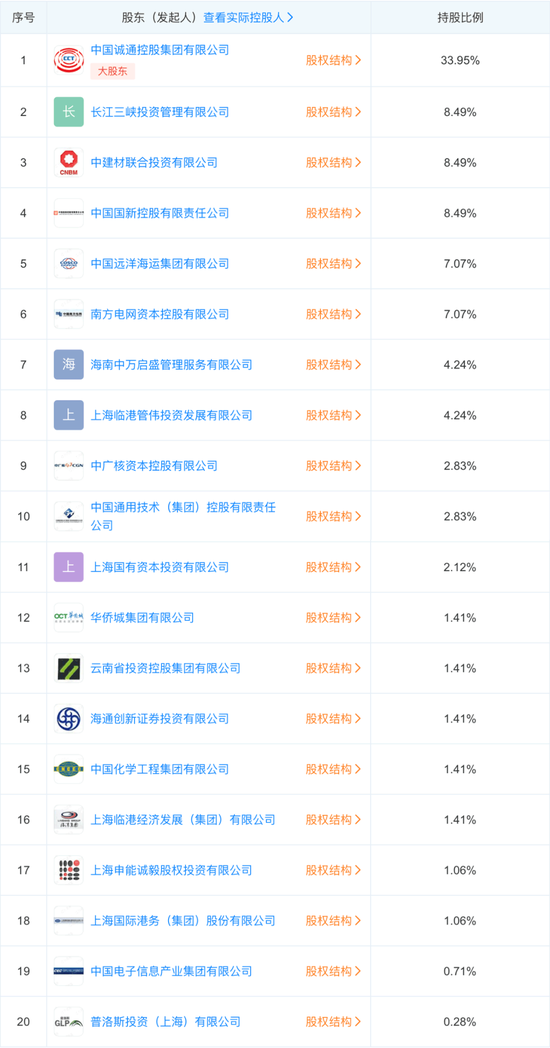 以及上海国有资本投资公司、华侨城集团、云南省投资控股集团、中国化学工程集团、申能集团、上海临港经济发展集团、中国电子集团等单位。