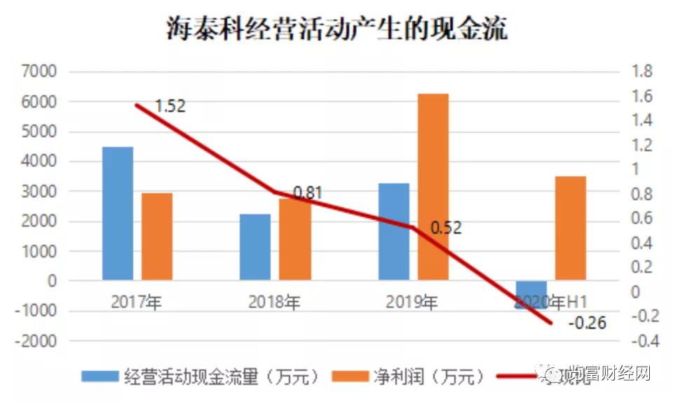 海泰科存货、应收双高,某种程度上带崩了经营活动产生的现金流,但公司净利润逐年增长。2017-2020H1分别为2951.09万元、2773.96万元、6272.96万元、3506.61万元。但是无论一家企业净利润有多高,如果该公司应收账款较高,很容易带崩公司现金流,首当其冲的就是经营活动产生的现金流,因为经营活动收回的现金较低。