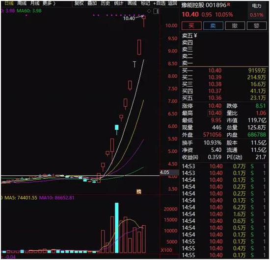 行情数据显示,豫能控股自12月14日开始,连续11个交易日上涨,累计涨幅高达176.60%,期间有10个交易日收盘都处于涨停状态。
