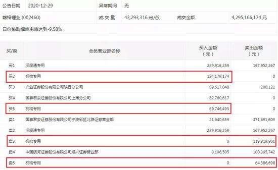 赣锋锂业今日龙虎榜数据