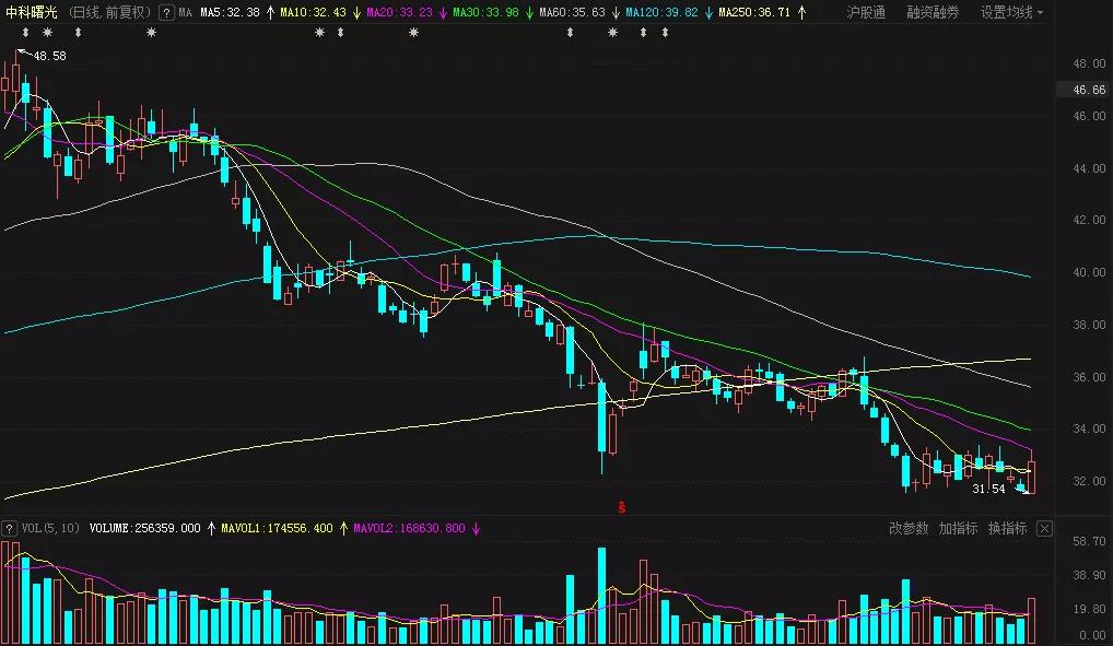 中科曙光近期日K线图