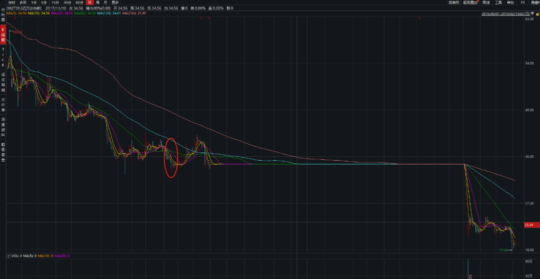 在张某账户建仓期间,万达电影股价的确处于低位,约在34-40元/股之间。然而,1年零4个月的漫长停牌期后,万达电影复牌大跌,连续收入四个跌停板。此后,万达电影股价长期不振,再未突破30元大关,曾某二人也再难找到合适的出货时机。截至调查日(2018年11月5日),张某账户所持的“万达电影”账面亏损78.62万。