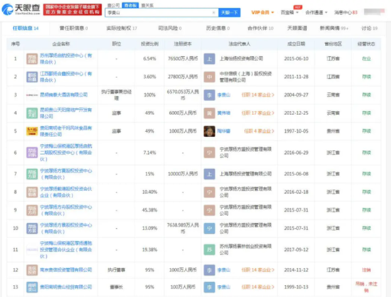 这些年,李贵山的投资足迹从云贵高原走向华东地区,前后共参股过14家企业,认缴金额超过2亿元。有媒体通过国家企业信用信息公示系统及天眼查公布的信息统计,他通过持有私募机构厚扬投资的股权,间接持股天壕环境、富临精工、百姓网、维和药业等多家A股和新三板上市公司。