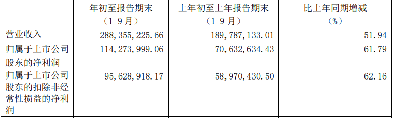 经营业绩:今年前三季度营收同比增长51.94%;归母净利润同比增长61.79%。