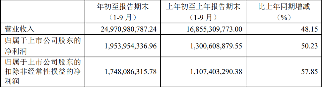 经营业绩:今年前三季度营收同比增长48.15%;归母净利润同比增长50.23%。