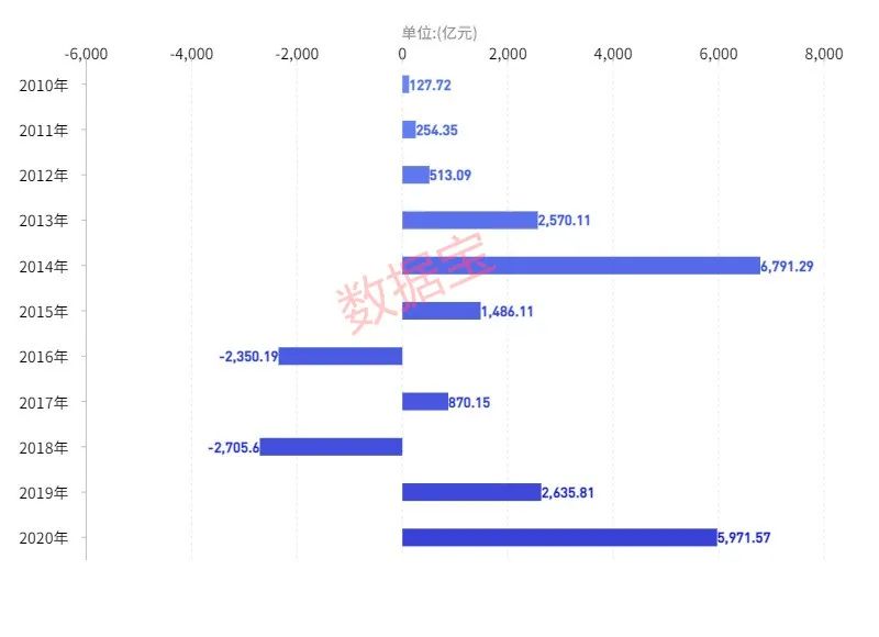 两融资金也被称为杠杆资金,以融资资金为主,作为增量资金,代表着投资者对市场的一种信心。2020年底两融余额同比2019年底的10192.85亿增加了近6000亿,全年增加额仅次于2014年的6791亿。