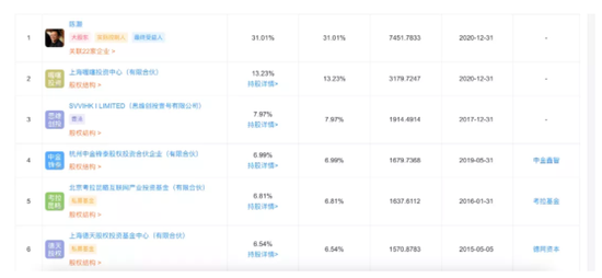 公示显示,收钱吧持股5%以上的股东为:陈灏、上海喔噻投资中心(有限合伙)、SVVIHK I Limited、杭州中金锋泰股权投资合伙企业(有限合伙)、北京考拉昆略互联网 产业投资基金(有限合伙)、上海德天股权投资基金中心(有限合伙) 。
