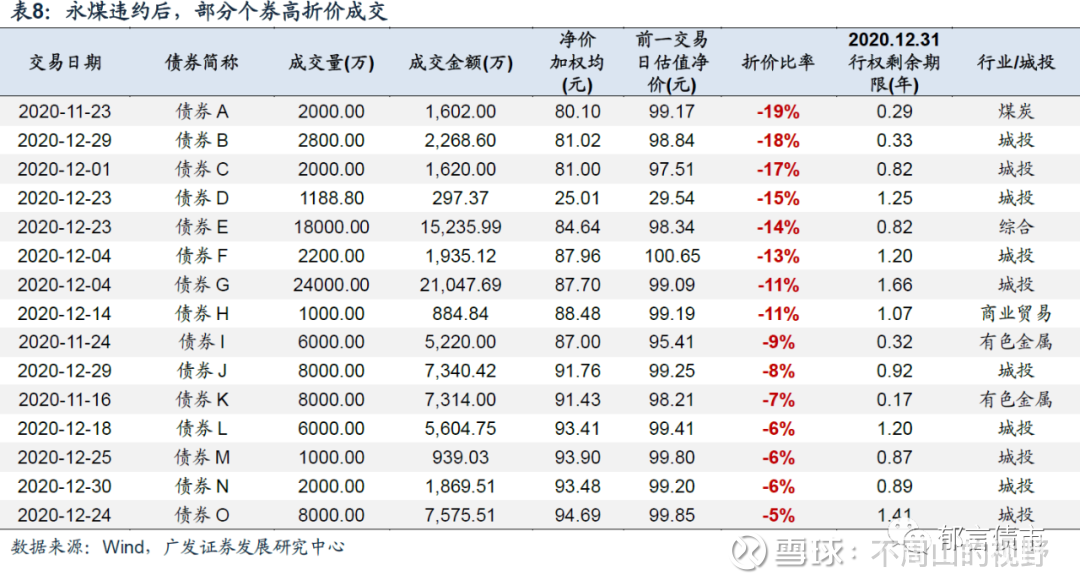 永煤违约后,各部委、地方政府、企业层面纷纷正面表态,有助于缓解市场对于国企无序违约的恐慌情绪,市场情绪逐步恢复叠加流动性宽松,一些高折价成交个券已经开始反弹。