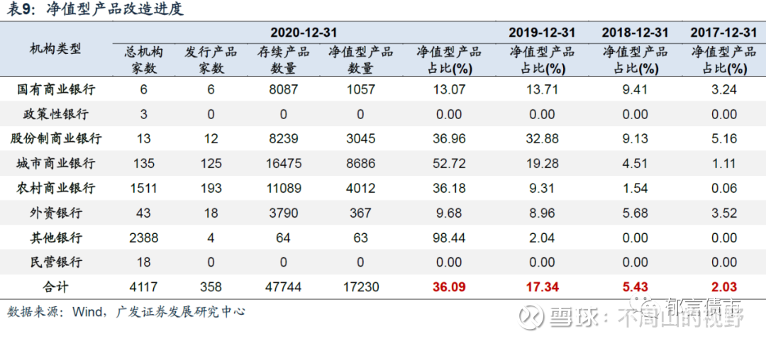 长期来看,随着保本型资管产品逐步向净值化产品转变,更多的产品受制于估值波动风险,未来违约事件冲击导致的高折价成交,以及带来的超调机会可能增加。资管新规落地后,要求金融机构对资管产品实行净值化管理,坚持公允价值计量原则对金融产品进行估值,及时反映基础资产的收益和风险。在资管新规颁布之前,除了非货币公募基金等产品使用公允价值计量估值方法之外,资管行业通常使用以银行理财产品为代表的摊余成本法进行估值。相比摊余成本法,公允价值计量使得产品净值受债券估值波动影响较大。根据Wind统计,净值型产品占比不断上升,由2017年末的2.03%上升至2020年末的36.09%,这一趋势仍将持续。