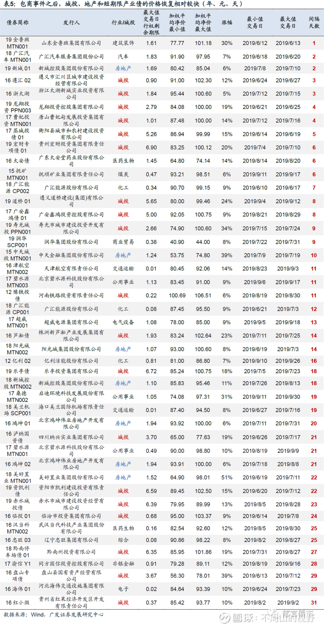 不过风险中也蕴藏着超跌机会。从包商事件之后高折价个券的价格恢复来看,一方面,城投债价格反弹的安全性相对较高,反弹幅度主要取决于折价程度。另一方面,城投、地产和短期限产业债的价格恢复相对较快,在1个月左右或以内。