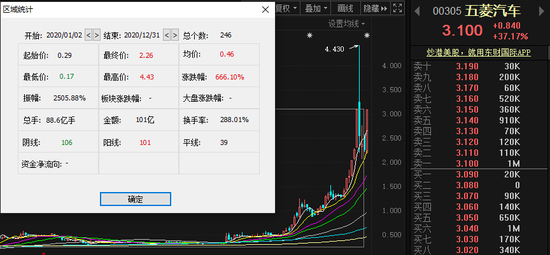 此外,一匹“黑马”走出亮眼成绩。上汽通用五菱公布数据称,宏光MINI EV全年累计销售127651辆,连续3个月蝉联新能源销冠,单日最高销量达2000辆。今日其零部件供应商港股五菱汽车涨幅超37%,2020年凭借“摆摊神车”和宏光MINI EV,五菱汽车涨幅达到了666%。