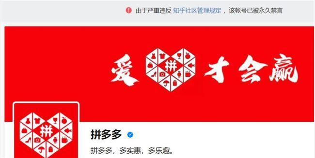 原标题:拼多多知乎账号被禁言15天 一度被永久禁言