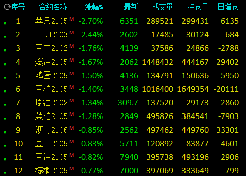 热点栏目1月5日,国内期市早盘涨跌不一,工业品多数上涨,纸浆涨逾3%,沪锡、铁矿石涨近3%,焦炭、不锈钢、硅铁涨逾2%,动力煤、沪镍涨近2%;农产品普跌,苹果跌近3%,豆二、鸡蛋、豆粕跌逾1%;能源品下跌,低硫燃油跌逾2%,燃油、原油跌逾1%。