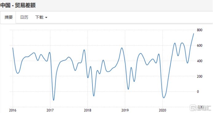 国际贸易方面,我国继续保持经常项目顺差。2020年11月,贸易顺差额从去年同期的371.8亿美元跃升至754.2亿美元,这是自1981年1月开始编制该数据以来的最大顺差,出口增长21.1%,达到2680.7亿美元的新高,进口增长4.5%。其中,中美国贸易顺差从10月份的337亿美元扩大到11月份的374亿美元,创下历史新高。