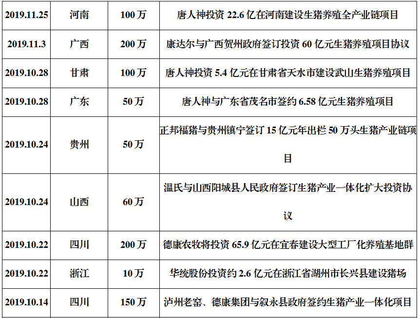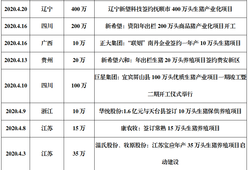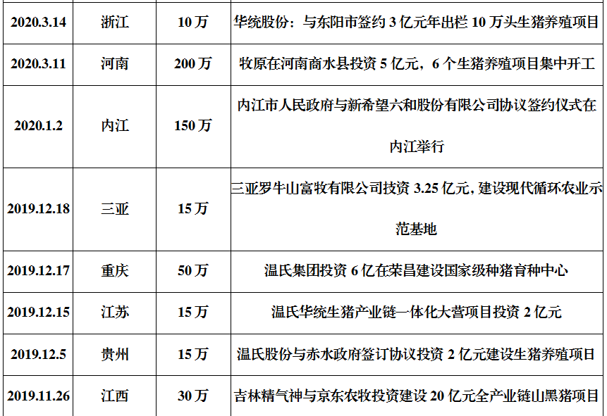 表3:2019年9月以来大型生猪养殖项目统计(截止6月5日)