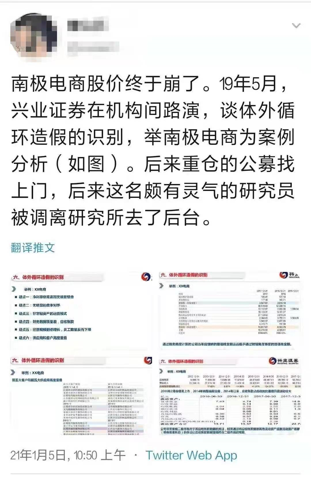 然而,市场上也有关于南极电商造假的传闻,此次在股价暴跌中,几年前的一份疑似券商质疑南极电商造假的研报PPT再度传开。