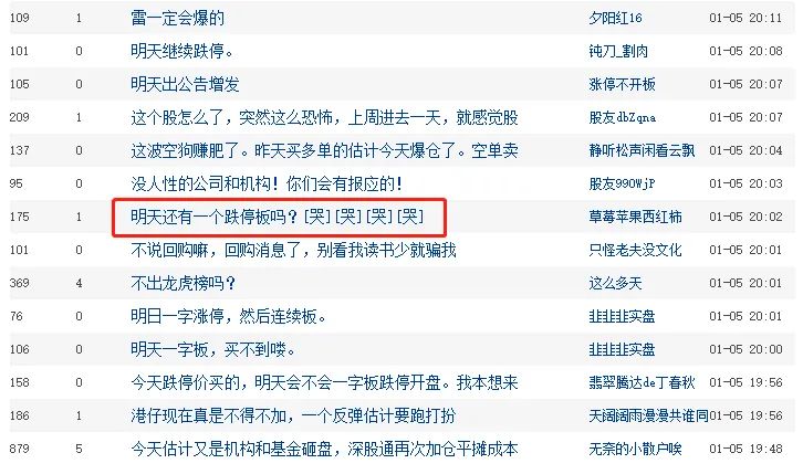 连续2个跌停后,股吧中网友担忧南极电商继续跌停。