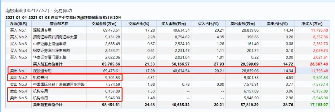 而在1月5日的龙虎榜席位中,3家机构席位大举卖出,北上的深股通买卖博弈激烈。