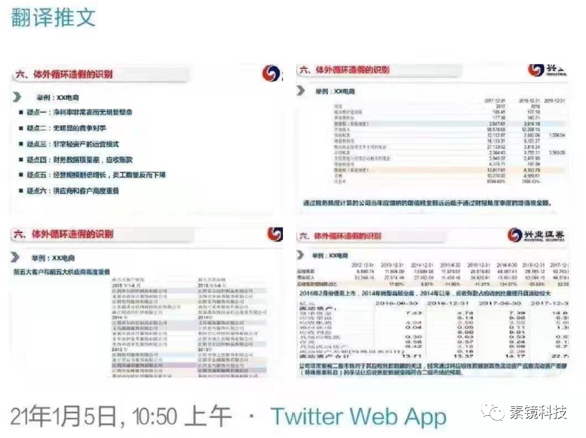 市场皆认为这是指南极电商,同时也有其它关于南极电商造假的传闻,此次在股价暴跌中,几年前的一份疑似券商质疑南极电商造假的研报PPT再度传开。