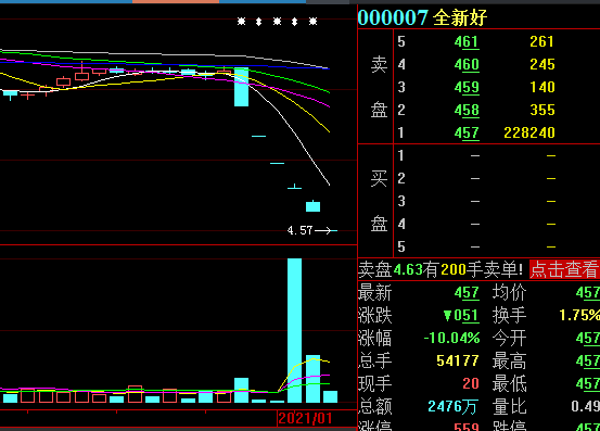 值得注意的是,1月5日全新好下午2点左右跌停板被多次撬开,但最终还是以跌停收盘。当天放出了巨量成交,成交金额达4.03亿元。