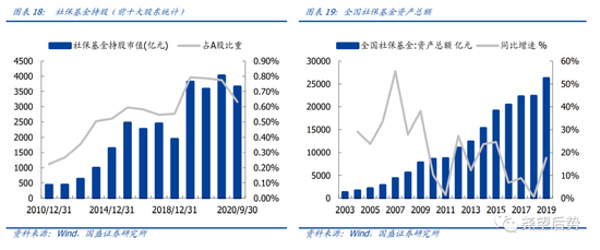 社保基金2020年四季度增量预计200亿元。2019年社保基金资产总额2.6万亿元,同比增加16.1%。假设维持16%增速,则2020年底社保资产有望达到3.0万亿元。根据基金业协会,2016年底社保配置A股比例21.4%,假设20%占比不变。全年增量预计800亿元。