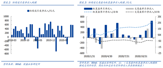 2020年12月北上资金净流入572亿元,较上月减少7亿元。其中交易盘净流出49亿元、配置盘净流入约630亿元。2020年前12月北上资金累计净流入2089亿元,交易型和配置型分别累计净流入2691亿元、净流出452亿元。