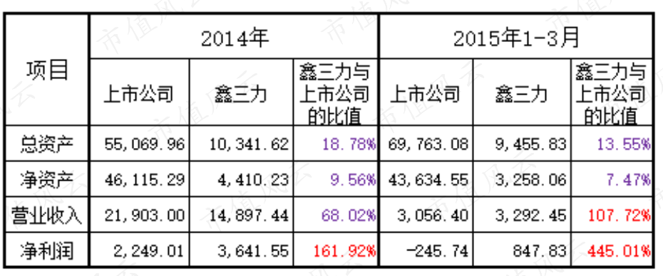 溢价如此之高,那是业务人家能赚钱,2014年、2015年1-3月鑫三力的净利润均高于上市公司。